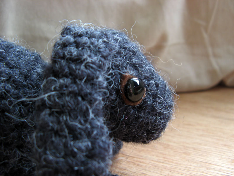 My crochet bunny with brads and brown felt as eyes. alternatieve veiligheidsogen, alternative animal eyes, amigurumi eyes, animal eyes, animal safety eyes, crochet eyes, doll eyes, brads, gehaakt konijn, crochet bunny, crochet rabbit, bunny amigurumi, rabbit amigurumi, rabbit doll, bunny doll, konijne pop.