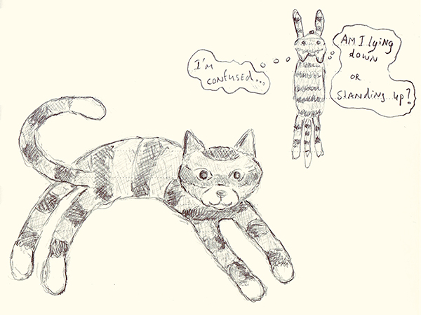 Here’s a sketch. He will be a ‘folded’ kitty.