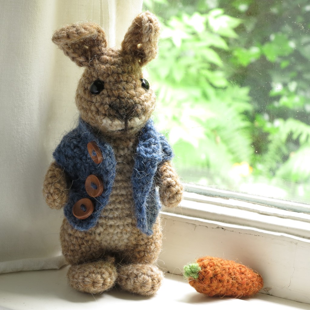 Well, what happened here? I liked Poochey in his trendy cardigan so very much that I decided to add him as a “dapper rabbit pattern” to my shops. Would you’ve been able to resist it? Just look at this utterly adorable crochet rabbit in his fancy outfits!