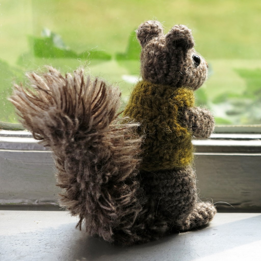 Now look what I’ve made this time, a new and improved crochet squirrel pattern! This is Floof, a cheeky little grey squirrel.