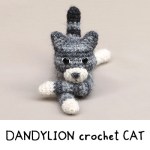 This crochet tabby cat is not very difficult to make, except for the colouring of the head, which takes a lot of attention. For some rounds you change colour stitch after stitch, and one unspotted mistake ‘messes the whole thing up’. I added extra pictures for these complicated rounds, and it is just matter of recounting each round you’ve finished to be sure you’ve done it right. The rest of the pattern should be easy to do; attaching of the front paws needs some extra attention but I added extra images there, too.