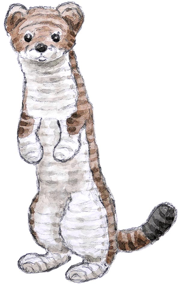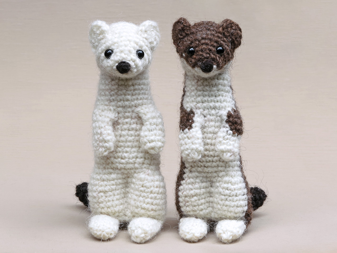 Ermine is the term used for animals that turn white in winter, hence the name for the white version. And with this pattern you can make a weasel too, they look quite similar except for their shorter tail without the black brush-tip. So if you skip that part you can make a weasel. Keep in mind, though, that in most parts of the world weasels don’t turn white in winter.