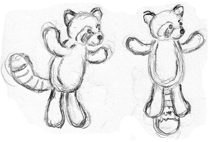 Ida is a lemur or prosimian monkey and has this specific type of body. I really like the shape of her head and flexible form. She is perfect for the monkey I like to make. The coloured illustration you see is one of the illustrations Esther made for the book. Ida is the baby monkey carried by the mother.